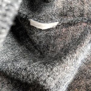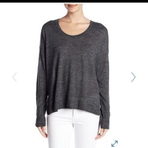 Wool blend pullover sweater, slight high low hem with slits. Rounded hem on back. Scoop neckline.
