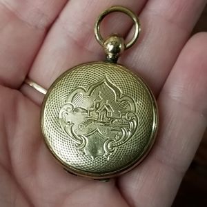 Relisted -Antique Victorian Locket gold tone lake house scene 1800s vintage