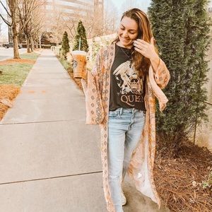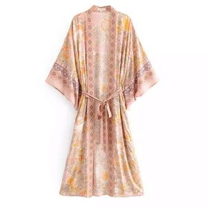SOLD OUT Pink Bohemian Floral Maxi Duster Kimono Wrap Robe