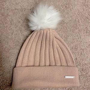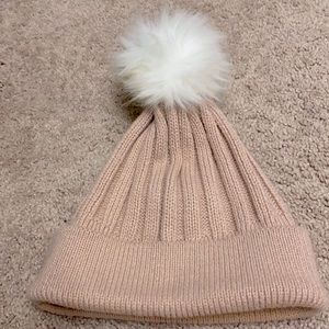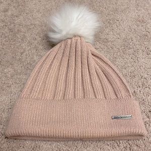 Vince Camuto Light Pink Blush Rose Women’s Beanie With Faux Fur White Pom