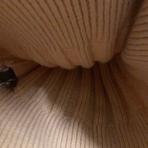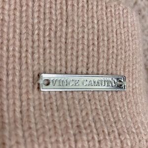 Vince Camuto NWOT Unused Dusty Rose Colored Beanie With The Vince Camuto Logo Sown On Front In Silver And A White Pom-Pom.