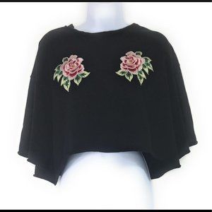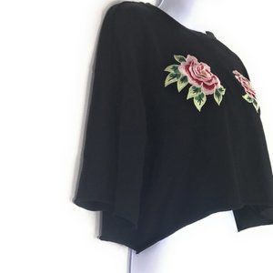Divided Black Embroidered Rose Crop Top Size L. Top is in excellent condition. Top is a soft sweatshirt material with beautiful embroidery.