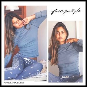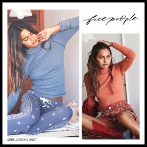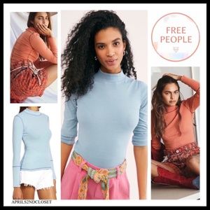 FREE PEOPLE BOHO KNIT TOP PULLOVER KNIT LONG SLEEVES MOCK NECK COTTON TEE A3C