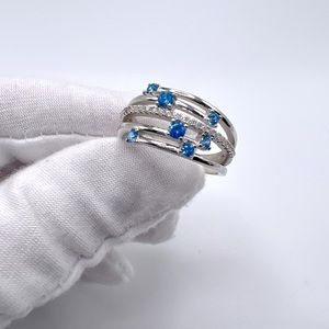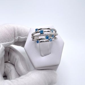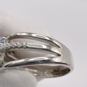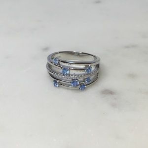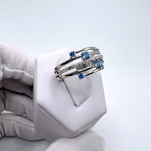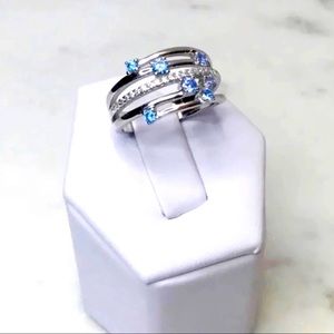 .925 Sterling Silver Blue Topaz Cz and Clear Cz Ring