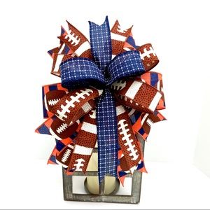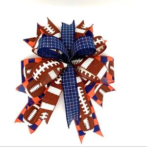 Beautiful handmade fall navy and orange football bow for a wreath, lantern, candlestick, mantle or any home decor item. Great way to support your favorite college or NFL team that use these team colors! Bows also make a great birthday gift.