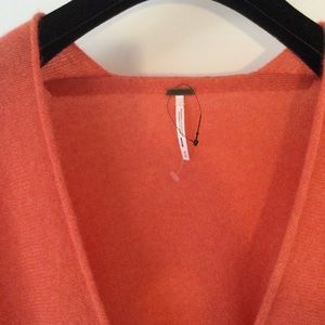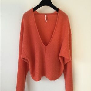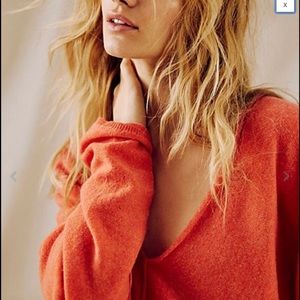 NEW FREE PEOPLE Sz M SOLITAIRE CASHMERE V NECK PULLOVER SWEATER CORAL