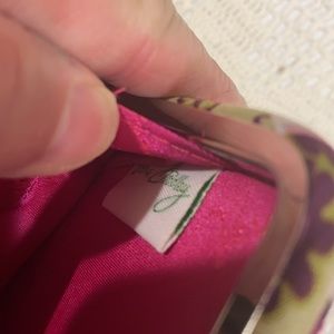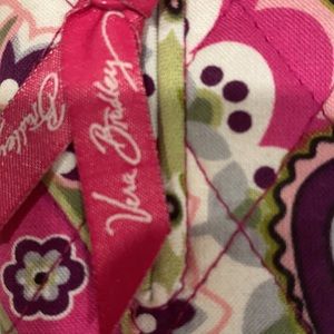 Cute VB Clutch in pink, maroon, green, gray and white paisley print. Inside has wallet features. Outside zipper on one side. Clutch is 8” wide x 5” length. There is a push snap at top.