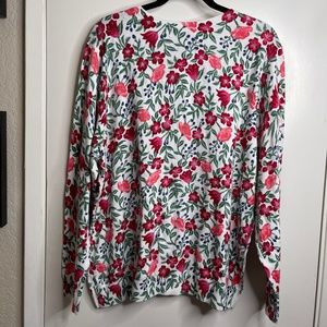 KAREN SCOTT Womens PLUS 2X White Red Pink Floral Cardigan Button Down Sweater
