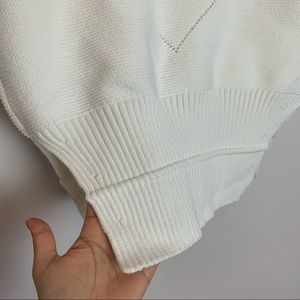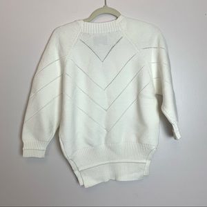 Sculpturally knit from an Italian cotton-blend yarn, the label's Decker V-neck sweater is cozily oversized with blouson sleeves. Detailed with a chevron pointelle and side slits. Rib knit cuffs and hem.
