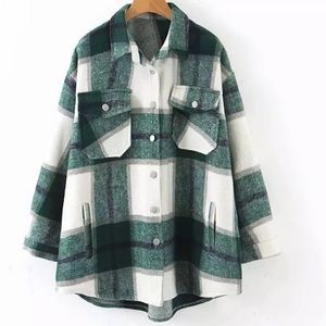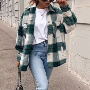 SOLD OUT Green Plaid Oversized Flannel Shacket Shirt Jacket