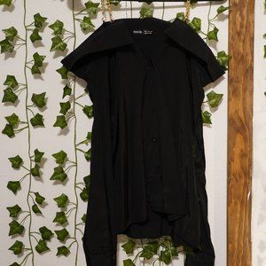 Off Shoulder Black Long Sleeve Button Up Top | Blouse w/ Gold Chain Straps