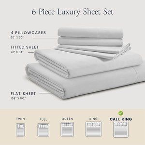 6-Piece King Sheets Set ~ 4 Pillowcases 20 x 40 Inch - Flat sheet 108 x 102 Inch - Fitted Sheet 78 x 80 x 16 Inch
