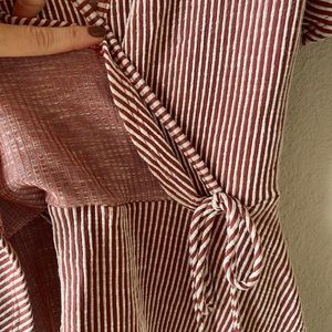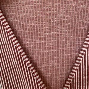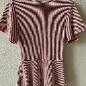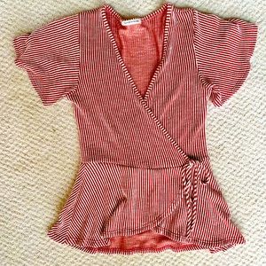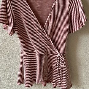 Lightly ribbed flutter sleeve and waist top, excellent condition - only worn once. Perfect for holiday photos. Has a tie detail at the waist (but is sewn shut so the top never opens fully). Very flattering and soft on. Comes from a pet free and smoke free home.