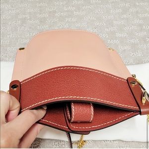Authentic Chloe Brand New NWT Fallow Pink Bicolor Aby Bucket Small Chain Bag. So classic and girly!! Made in Italy- in the color “Fallow Pink”, size Small, shiny gold toned hardware. Removable large Chloe signature Lock and Key. Bucket bag style with an attached crossbody strap (23” strap drop). Brown leather interior lining. Magnetic closure. Bag is brand new and includes original dust bag, tags and Auth card. Message for further details.