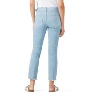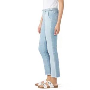 The Isabelle High Rise Straight Crop Jean features a vintage light wash denim contrasted with retro lighter wash panels. The Isabelle Paneled offers a fitted silhouette through the hips, straight fit through the thighs and leg opening, cropped hem with fraying, and adjustable D-ring tabs at the waistband. This women’s cropped jean is designed in a rigid, 100% cotton denim fabrication for a true vintage look and feel.