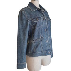 J. Jill Recrafted Floral Embroidered Medium Blue Denim Jacket XS