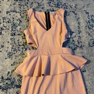 Cute for a night out! Sides cut out, form fitting, stops mid thigh depending on how tall you are. Zips all the way down with a deep v front.