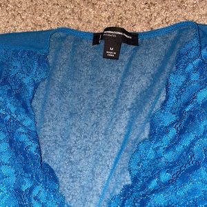 Blue “Not So Basic” Long-Sleeve Lace Mesh Bodysuit