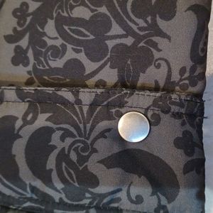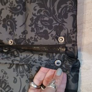 Absolutely beautiful! Grayish purple color with black designs. Zipper and button snap front. Side pockets. Lightly worn but in excellent condition. Perfect for a chilly day.