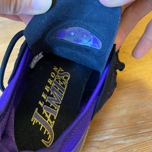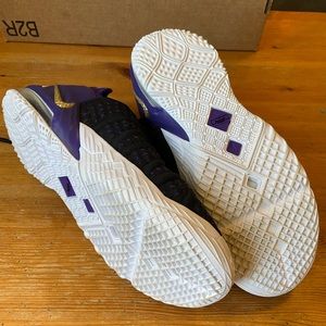 These are Nike LeBron 18 shoes in size 7 youth. They were never worn because my son’s foot grew by the time he got them. Perfect condition- no box. Lakers colors: black, purple and gold.