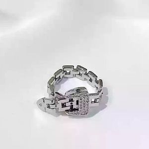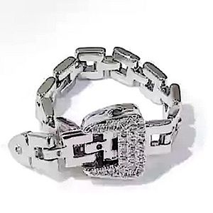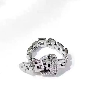 SILVER CHAIN BUCKLE RHINESTONE RING