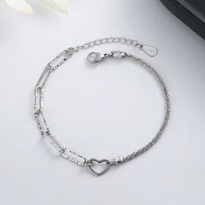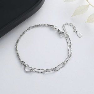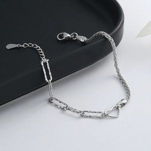 925 Sterling Silver Dainty Heart Chain Link Bracelet