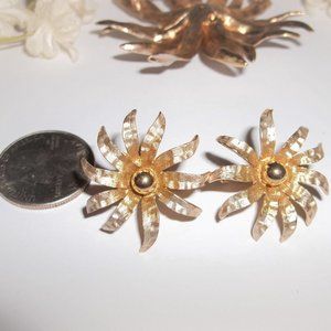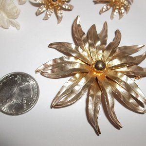 Vintage Kramer Gold Flower Clip On Earring Brooch Set Fashion Jewelry Retro 6806