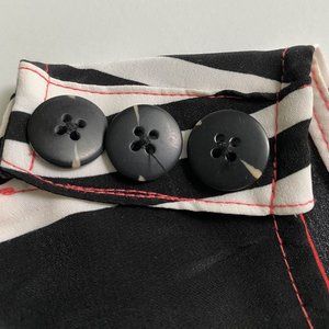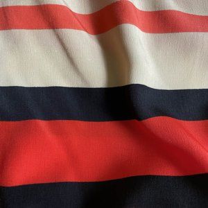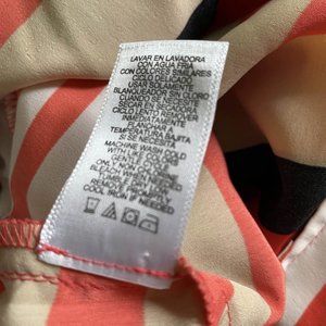 This sleeveless striped romper is stunning worn alone or paired with a cardigan! Side hip pockets. Fixed triple-button detail at left shoulder. Back zipper, hook-and-eye closure. NWOT. Brand new. Never worn. Measures approx. 18” from armpit to armpit when lying flat. Approx. 14” across waist. Approx. 2.5” inseam. 100% Polyester. Covershot courtesy of Peter Som for DesigNation.