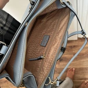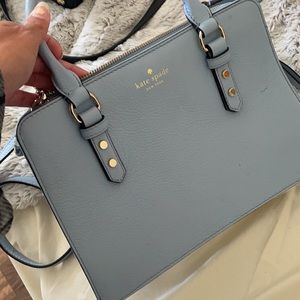 Cute baby blue Kate Spade Bag/purse. Small brown squiggle on the side. Could be removed with cleaner, open to offers