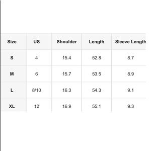 S=2/4 M= 6 L= 8/10 XL= 12 Please note: size tag is letter sizes