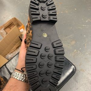 Women’s Lace Up Chunky Sole Ankle Boot in Leopard Faux Suede