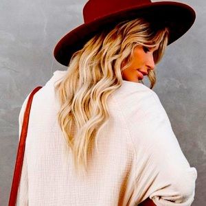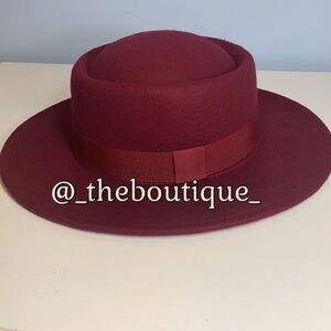 Chic, boho, burgundy felted wide brim hat.