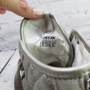 Geox Respira Silver Patent Leather Hi Top Back Zip Sneakers Size US 8
