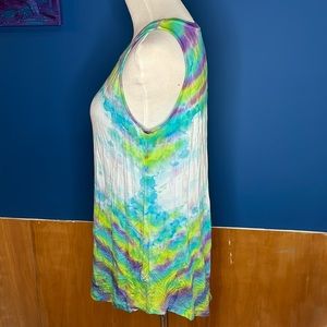 Tye dye tank top size medium with lime, purple and teal dye. Shirt is new unworn only newly dyed by JRSDesignsltd. Soft and stretchy. Handmade in Maine with ❤️