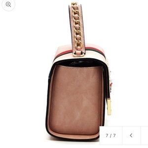 Faux vegan leather Magnetic snap closure Gold-tone hardware Detachable shoulder strap 2-in-1 Bag (Satchel & Wallet) L 10 * H 6.5 * W 4.5 (4 D) L 7.5 * H 4 * W 1