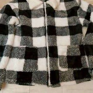 BOHO BABE Buffalo Plaid Zip Up Teddy Coat