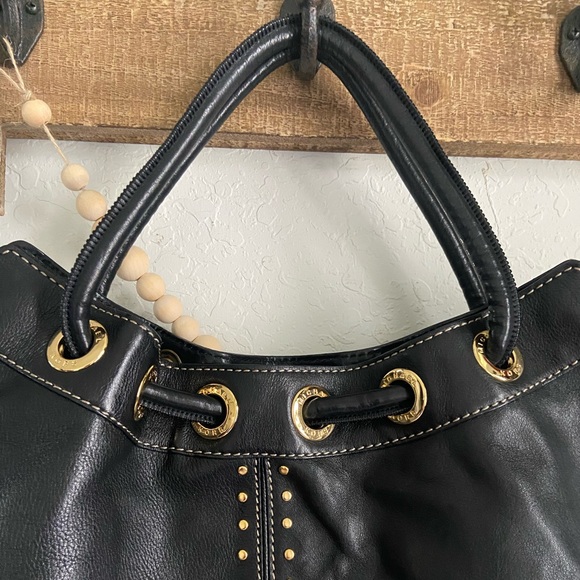 Michael Kors Black Leather Gold Studded Hobo Tote Bag