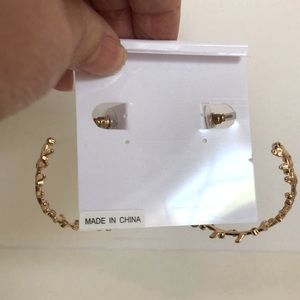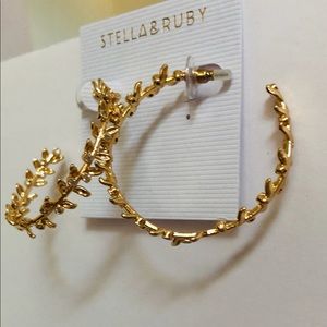 Stella & Ruby Gold Plated Hoop Earrings Trailing Leaf Crystal Accent