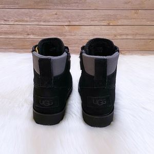 New In Box- UGG Kids Hilmar CWR Waterproof Lace Up Black Suede Boots With Side Zip Closures, 200g Thinsulate Insulation, UGGplush Linings And Insoles And Treadlite By UGG Outsoles. Weather Rated To -20 Degrees C.