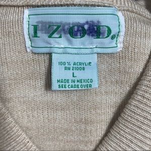 This vintage Izod v-neck sweater is a classic piece to add to your wardrobe. Soft tan coloring with v-neck & Izod embroidered logo makes this a true vintage piece. Perfect to dress up or down for a sexy vintage laid back look. This sweater looks & feels brand new. This piece could be dead stock. Mint condition. Size L ( I would say this fits more like a M/L)