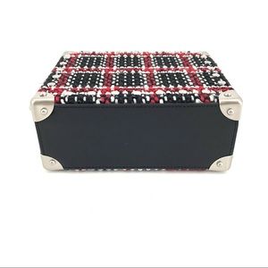 Vintage plaid textile patterns this structured studded hardcase crossbody.