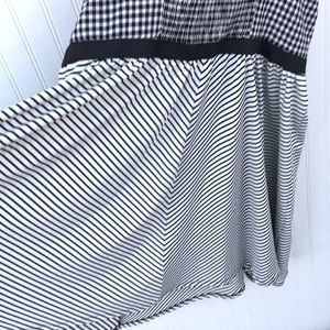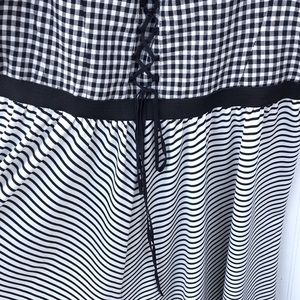 Corset Gingham Betsey Johnson dress New Sz 14. Has tag with a Nordstrom sticker but price was pulled off, probably a gift. 100% cotton. Could be vintage ? Beautiful and flare from waist. Built in padding and has hidden side zipper black and white gingham. Super retro pin up feel.