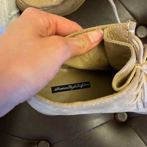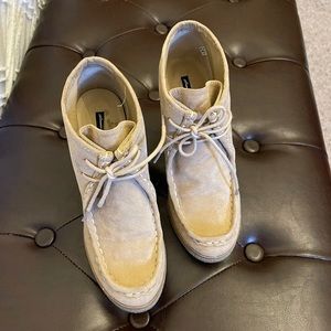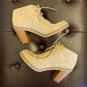Pre loved with signs of use—lots of left left & so cute 4 this time of year! Come from a SF home. Has a couple colored marks in the interior, scuff on the heel & I think 1 of the insoles may be loose. It’s still there & obviously not noticeable when worn but know that these flaws are present when making an offer. Super cute block heel, tie front with a heeled moccasin feel. Pair with your favorite denim skirt, sweater & vest. C all pics b4 purchase. Fair offers considered. 20% off bundles. Ty