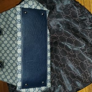 Pre-loved Authentic Gucci Coated Canvas Tote Bag in Rank A Condition. 1 Zippy compartment inside. Navy Blue, with silver hardware