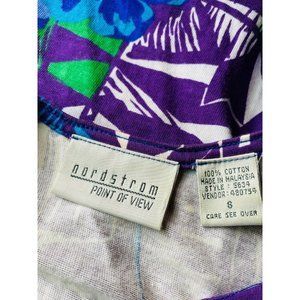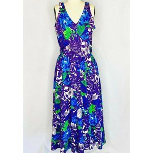 Vintage 80s 90s Purple Floral Day Dress Sz S Small Bright Tropical Button Front