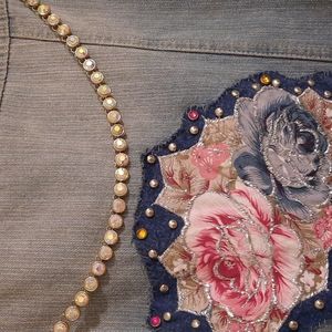 Sparkle, denim, roses, Vest 2x or great as oversize vest for l/xl rock n roll