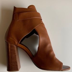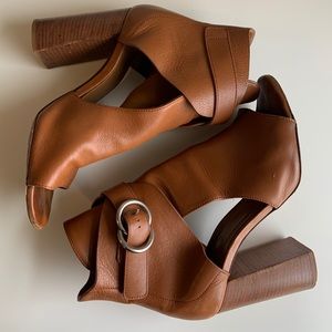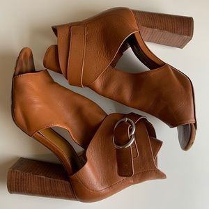 Previously loved Chloe Millie Peep Toe Buckle Stacked Heel Sandal open toe booties. Fits true to size