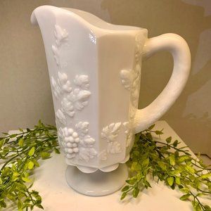 Vintage Westmoreland Paneled Grape White Milk Glass Pitcher.
