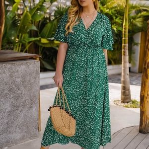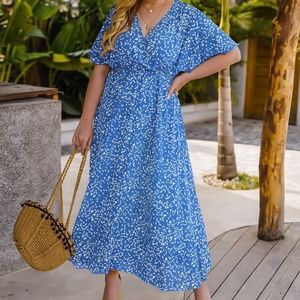 PLUS Blue Floral Butterfly Sleeve Maxi Dress