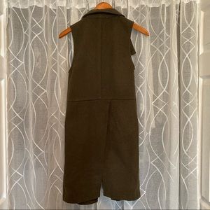 BCBGeneration Women’s sleeveless coat (or long vest?) in green featuring an oversized collar and slit in the back. Bonus: it has pockets! 😍